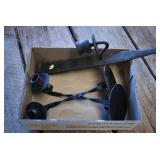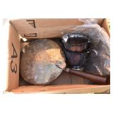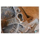 Cast Items: Enterprise Sausage Stuffer, Cast Black Hawk Corn Sheller, Cast Sausage Stuffer, Cast Ladles and Forks, 1896 Hanover Foundry & Machine Co. Cast Trough, Cast Tractor Seat, A.G. Aughey’s & Sons Codorus PA Cast Trough, Mountville PA Cast Trough, 1885 Canadian No. 10 and Other Grinding Wheels, Cast Pots, Cast Fry Pan, Cast Banks, and Other
