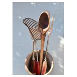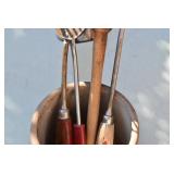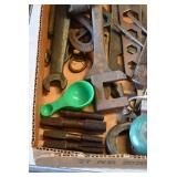 Cast Items: Enterprise Sausage Stuffer, Cast Black Hawk Corn Sheller, Cast Sausage Stuffer, Cast Ladles and Forks, 1896 Hanover Foundry & Machine Co. Cast Trough, Cast Tractor Seat, A.G. Aughey’s & Sons Codorus PA Cast Trough, Mountville PA Cast Trough, 1885 Canadian No. 10 and Other Grinding Wheels, Cast Pots, Cast Fry Pan, Cast Banks, and Other