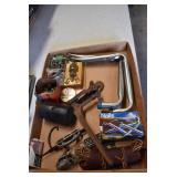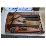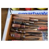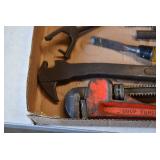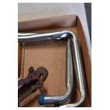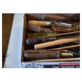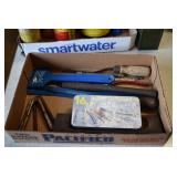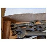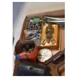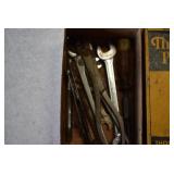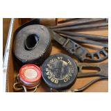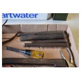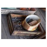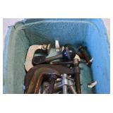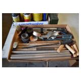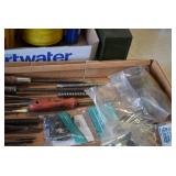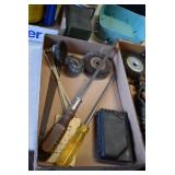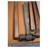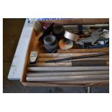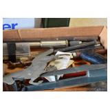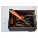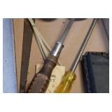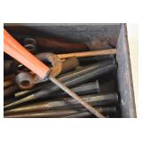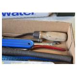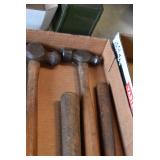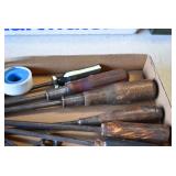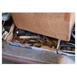 Tools and Other: Delta Table Saw, Duracraft Drill Press, Craftsman Sharpening Wheel, Toolboxes, Hardware, 1 and 2-Man Saws, Bench Top Vices, Screw Drivers, Hatchets, Adjustable and Other Wrenches, Hammer Heads, Files, Socket Sets, Clamps, Indexes, Pliers, Wood Planes, Chains, Drill Bits, Shop Lights, Lawn Roller, Lawn Magnet, (15) Full Round 8’ Treated Posts, Levels, and Other
