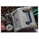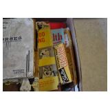 Hunting/Sporting Related: Large Amount of Animal Traps, Various Rifle, Shotgun, and Pistol Ammunition, Powder, Reloading Dies, Gun Cases, Reloading Manuals and Books, Caldwell Lead Sled, Metal Ammo Cans, Reloading Stand, Scopes, Gun Cleaning Items, Slings and Holsters, Vintage Primer Tins, Scope Rings, Brass, Antlers, Fishing Items, Game News, Bait Bucket, Tree Stands, Hunting Clothing, and Other