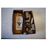Advertising Items: Large Amount Wooden Gun Advertising Boxes, Large Amount of Advertising Tins, Dr. Salsbury’s Medicines and Biologics for Poultry and Farm Livestock Display, Browns Mule Tobacco Box, Vintage Gasboy Atlantic Gas Pump, Local Advertising Items, and Other