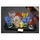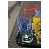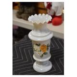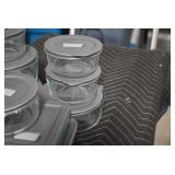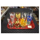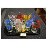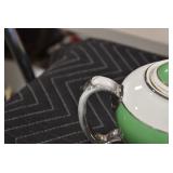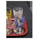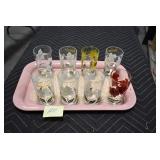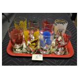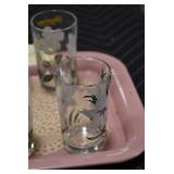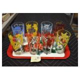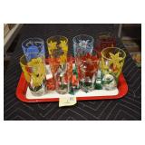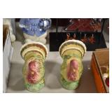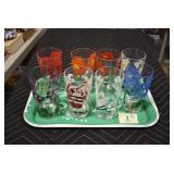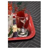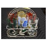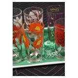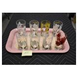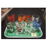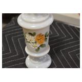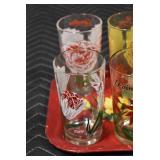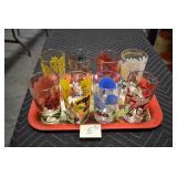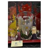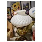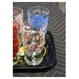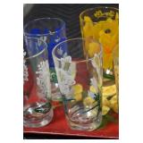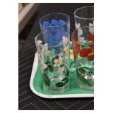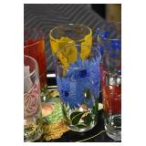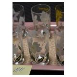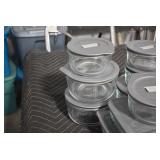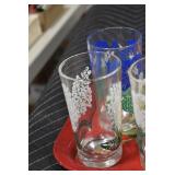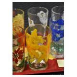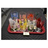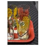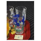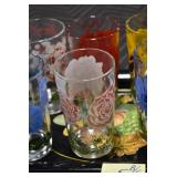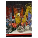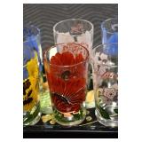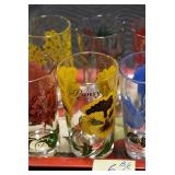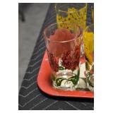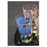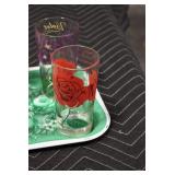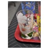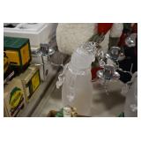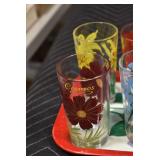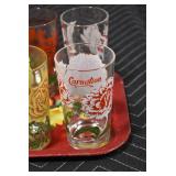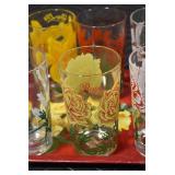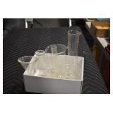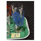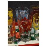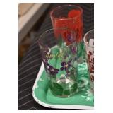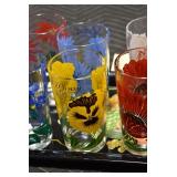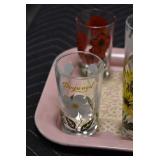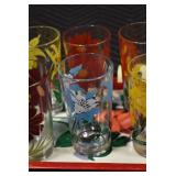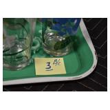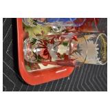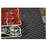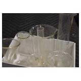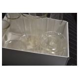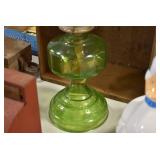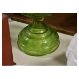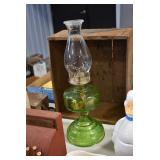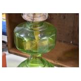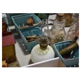 Antique Glassware: 50+ Peanut Butter Glasses (Some in Wire Carries), Green Depression Oil Lamp, Old Bottles, Vintage Glass Vases, and Other