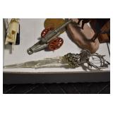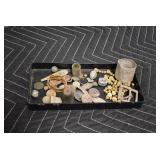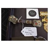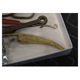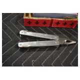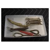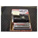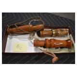 Sporting Related: Hunting Clothing, Vintage Hatchets and Knives, Game Calls, Multi Tools, BB Guns, Ammunition, Leather Holster Rigs, Cap Guns, and Other