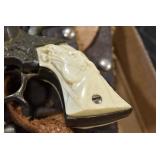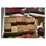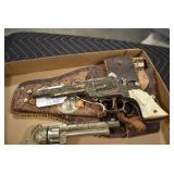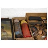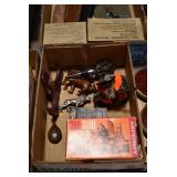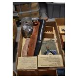 Sporting Related: Hunting Clothing, Vintage Hatchets and Knives, Game Calls, Multi Tools, BB Guns, Ammunition, Leather Holster Rigs, Cap Guns, and Other