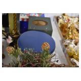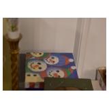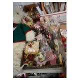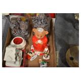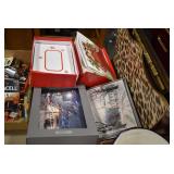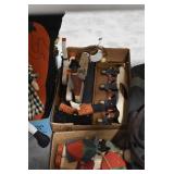 Holiday Decorations: Large Amount of Exceptional Holiday Related Blow Molds, Lighted Outdoor Holiday Decorations, 34 Piece Victorian Village, Whitehouse Christmas Tree Ornaments, Santa Clase and Snowmen Figures, 26 Nut Crackers, and Other Antique Glassware: 50+ Peanut Butter Glasses (Some in Wire Carries), Green Depression Oil Lamp, Old Bottles, Vintage Glass Vases, and Other