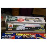 Toys and Trains: Vintage Toy Cash Register, Vintage Tin Childs Toys, Diecast Toy Cars and Trucks, Car and Truck Banks, Advertising Tractor Trailers, Model Airplanes, Norman Rockwell the Saturday Evening Post Collectible Christmas Train, Thunderball Hauler Train Set, Lionel and Other Train Sets, Engines, Tenders, and Cars, Layout Accessories, and Other