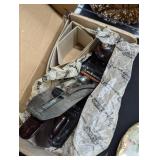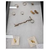 Gold jewelry, 10k, 14k, 22k, rings, necklaces and bracelet. Commemorative Sterling coins First day covers. Americana items including rare original Parker Brothers card game, cardboard sign, bisque doll and more. If you'd like more photos please text us. 1852 Slave tag New Today's Living by Drexel drop leaf dining table w/4 chairs and sideboard. G.I. Joe's and blond Ponytail Barbie. Pyrex bowls and casserole 2.5' aluminum Christmas tree-missing the stand Comic books, Red Wing and BMW boots. Signed baseball bats, baseball cards and sports cards, Cleveland Indians bobble heads. Woodworking tools, lathe, grinder, air compressor, sander, jointer planer, band saw and others. Wool fabric and felt, bags and boxes of it from a rug shop.