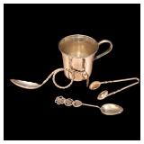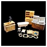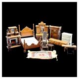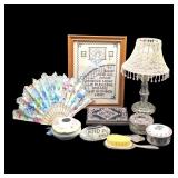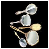 Vintage Gold Tone and Silverplated ornate hand mirrors and brushes and other vanity miniatures