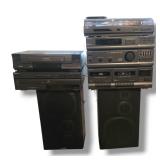2 Vintage Panasonic and Sony Stereo Systems with turntables and speakers