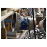 Large Amount of Pottery: Pottery Crocks and Jugs (Some w/Blue), Pottery Bowls, Pottery Vases, Pottery Pitchers, Pottery Mugs, and Other