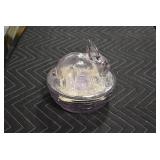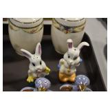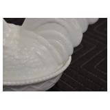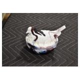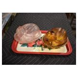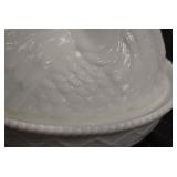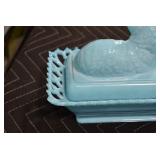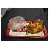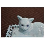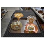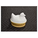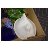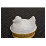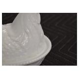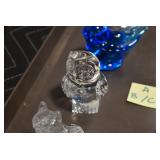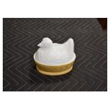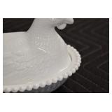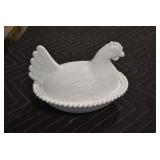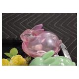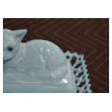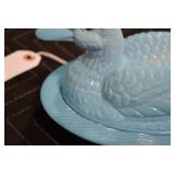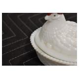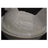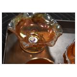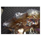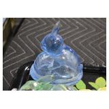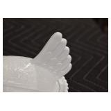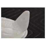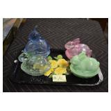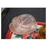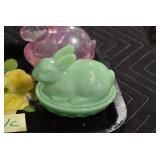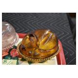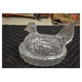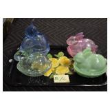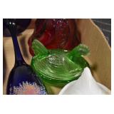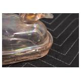 Antique Glassware: 40 Various Peanut Butter Glasses, Large Amount of Carnival Glass, Slag Glass and Other Chicken on Nests, Westmoreland Cat on Nest, Westmoreland Duck on Nest, Westmoreland Sheep on Nest, Miniature Bunnies on Nests, Salt and Pepper Shakers, Fenton Glass, Lenox Candle Holders, Large Amount of Glass Birds, Large Amount of Glass Paperweights, and Other