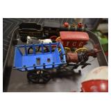 Toys and Trains: Model Airplanes, Diecast Toy Cars and Trucks, Diecast Toy Tractors, Antique Cars, Tonka Car Carrier, U.S. Mobile Guided Missile Squadron Tin Toy Truck, Buddy-L Repair Truck, Cast Horse Drawn Carriages, Lionel Silver Spike Train Set, Lionel Grand Trunk & Western Train Set, Lionel Commando Assault Train Set, and Other