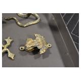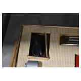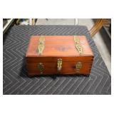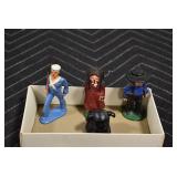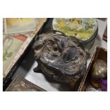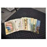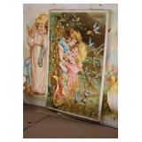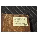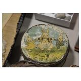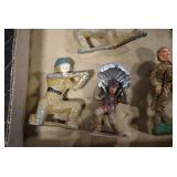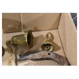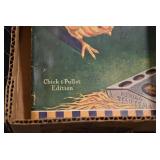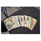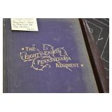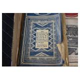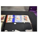 Antiques and Collectibles: 15 Various Lots of Comic Books, Griswold and Other Cast Fry Pans, Miniature Cast and Other Figures, Large Amount of Snow Babies, Large Amount of Vintage Books (Many Signed), Large Amount of Vintage Advertising and Other Postcards, Holiday Cards, Lanterns and Lantern Parts, Large Amount of Copper and Brass Trinkets and Figures, Brass Swan, Large Brass Elephant, Vintage Binoculars, Costume Jewelry, Wrist Watches, Clock and Watch Parts, Thimbles, Buttons, Tinware, Mantle Clock, Patches, Scientific Beakers, Advertising Tins, Decorated Trinket Boxes, General Electric Broadcast Radio, Old Photographs, 1840 Johnathan Garber Frederick City MD Afghan, Belgian Made Afghan, Galvanized Tubs, Beer Advertising Signs, Marbles, Flatware Set, AG Meat Salesman Sample Grinder, Decoys, Military Badges and Pins, Graniteware, Railroad and Military Books, Large Amount of Belt Buckles, Meat Cleavers, Folding, Pen, and Sheath Knives, 10+ Collectible Swords w/Scabbards, Ammunition, Framed Pictures and Prints, Original Feather Tree, Homemade Holiday Houses, Chests and Trunks, 2-Man Saws, Sausage Stuffer on Bench, and Other