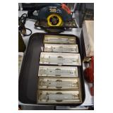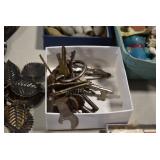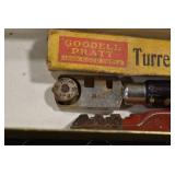 Tools: Stanley and Other Clamps, Echo Hedge Trimmer, Bench Grinders, Cummins Bench Top Drill Press, Levels, Vintage Oilers, Wrenches, Hammers, Screw Drivers, Vintage Hatchets, and Other