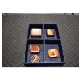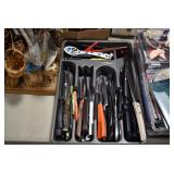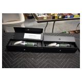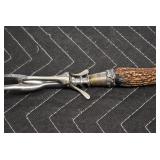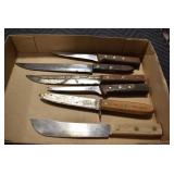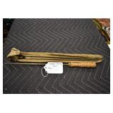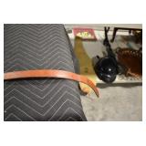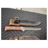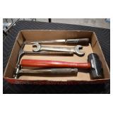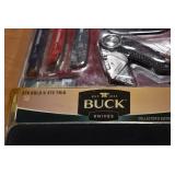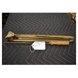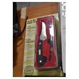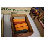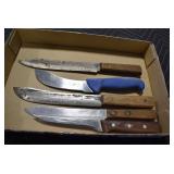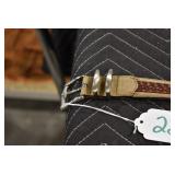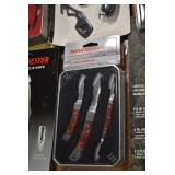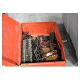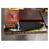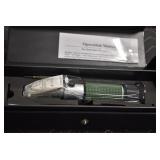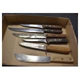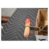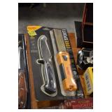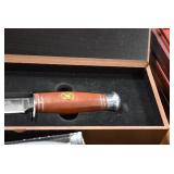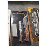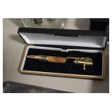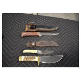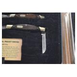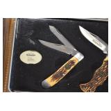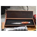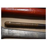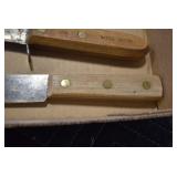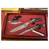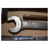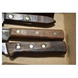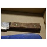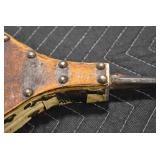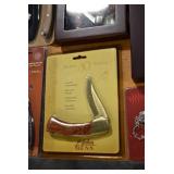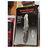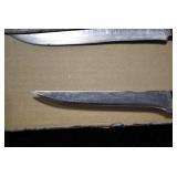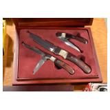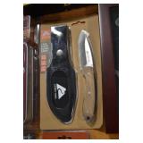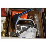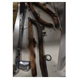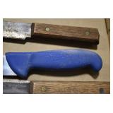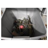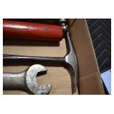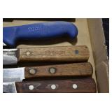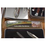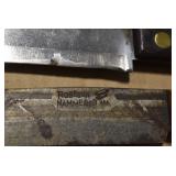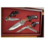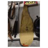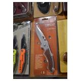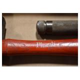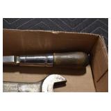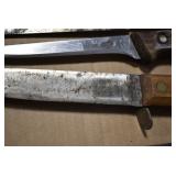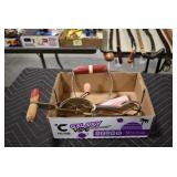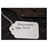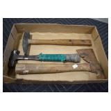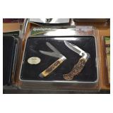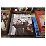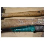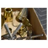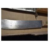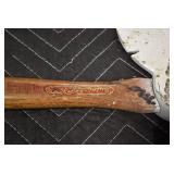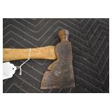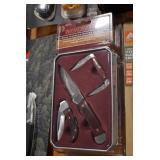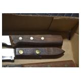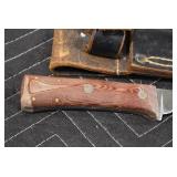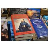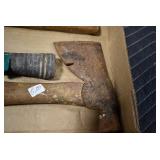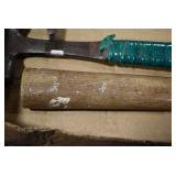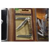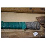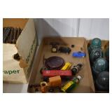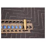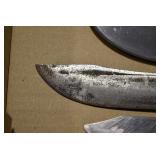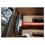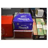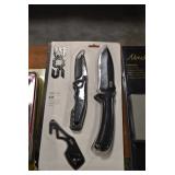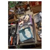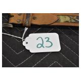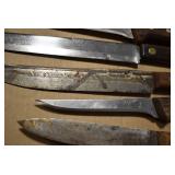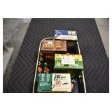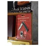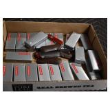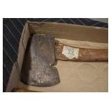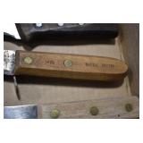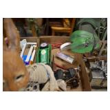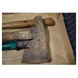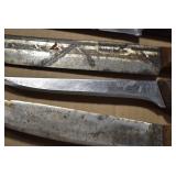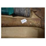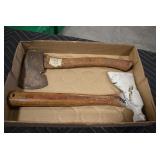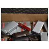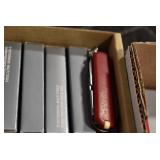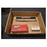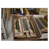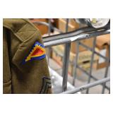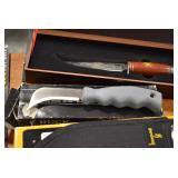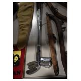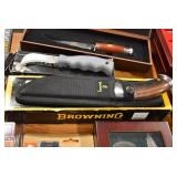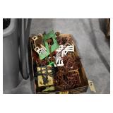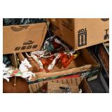 Sporting/Military Related: Lead Soldiers, Buckles, Patches, Badges, Hats, Military Coat, Folding, Pen, and Sheath Knives, Knife Sets, Butcher Knives, Axes, Hatchets, Wooden Ammo Crates, Ammunition, Marbles Cleaning Rod w/Pouch, Scopes, Bullets, Hotchkiss Machine Gun Cartridge Strip, and Other