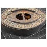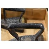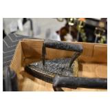 Castware: Large Amount of Griswold, Erie, Wagner, Wapak, and Other Cast Fry Pans of Various Sizes, Sad Irons, Cast Gypsy Pots, Match Holders, and Other