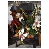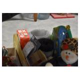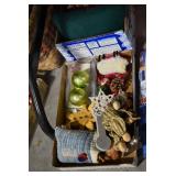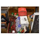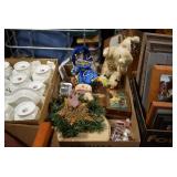Holiday Decorations: Christmas and Easter Blow Molds of Various Sizes, Lighted Wire Outdoor Deer, Santa, Snowman, and Other Holiday Figures, Christmas Ornaments, Very Large Stuffed Singing Christmas Dog, Christmas Lights, and Other