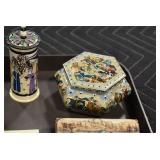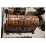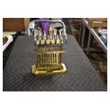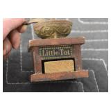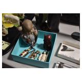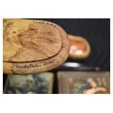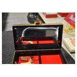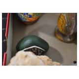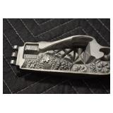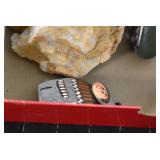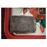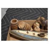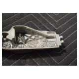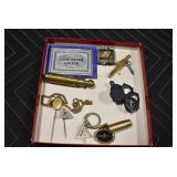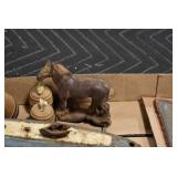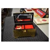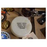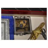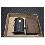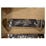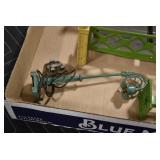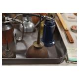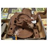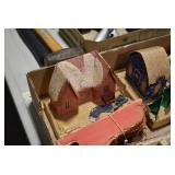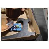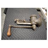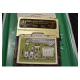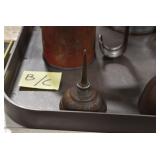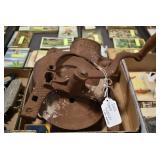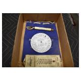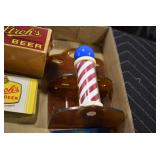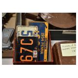 Antiques and Collectibles: 25 Various Belts, Large Amount of Folding Rules, Griswold and Other Cast Fry Pans, Pottery Crocks and Jugs, Erector Sets, Large Amount of Vintage License Plates, Vintage Postcards, Vintage Holiday Cards, Glass Syringes, Larry Harmon Pictures Co. 1970 Laurel and Hardy, Signed Miniature Bowling Pins, Beer Advertising Signs, Beer Taps, Vintage Oilers, Wooden Trinket Boxes, Carved Pipes, Spurs, Cast Grinders, Match Case Holders, Ladies Hats, Vintage Ice-Cream Scoop, Old Books, Vintage Scales, Copper and Brass Items, Early Americana Items, Woodware, Decorated Trinket Boxes, Vintage Cameras, Camel Bone Boxes, Old Photographs, Afghans, Buttons, Vintage Homemade Houses, Belt Buckles, Sterling Items, Books, Brass Instruments, Framed Prints and Pictures, Showcases, Gum Ball Machine, Various Stands, Curio Cabinet, and Other