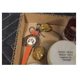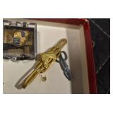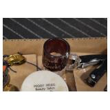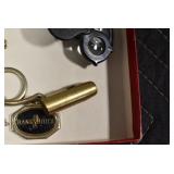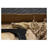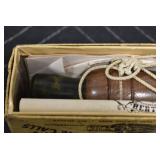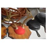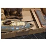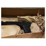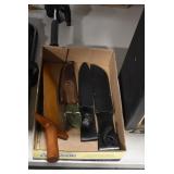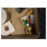 Sporting/Military Related: Antlers on Plaques, Folding, Pen, and Sheath Knives, Butcher Knives, Ammunition, BB Guns, Powder Flasks, Powder Horns, Military Buttons and Badges, Large Shells, Military Related Books, Fort Pillowcases, Ammo Cans, Patches, and Other