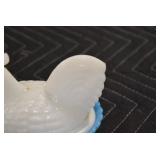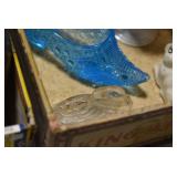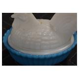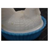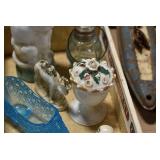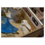 Antique Glassware: Milk Bottles, Uranium Glass, Pink Depression, Glass Eggs, Chicken on Nests, Glass Ash Trays, Glass Figures, and Other
