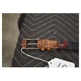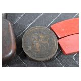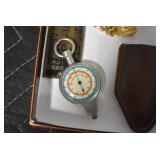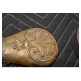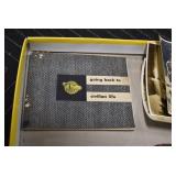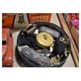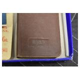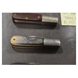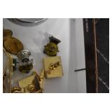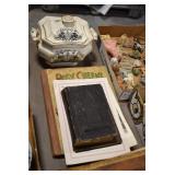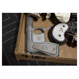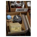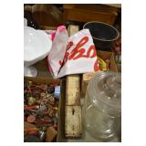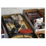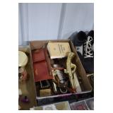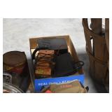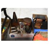 Antiques and Collectibles: 25 Various Belts, Large Amount of Folding Rules, Griswold and Other Cast Fry Pans, Pottery Crocks and Jugs, Erector Sets, Large Amount of Vintage License Plates, Vintage Postcards, Vintage Holiday Cards, Glass Syringes, Larry Harmon Pictures Co. 1970 Laurel and Hardy, Signed Miniature Bowling Pins, Beer Advertising Signs, Beer Taps, Vintage Oilers, Wooden Trinket Boxes, Carved Pipes, Spurs, Cast Grinders, Match Case Holders, Ladies Hats, Vintage Ice-Cream Scoop, Old Books, Vintage Scales, Copper and Brass Items, Early Americana Items, Woodware, Decorated Trinket Boxes, Vintage Cameras, Camel Bone Boxes, Old Photographs, Afghans, Buttons, Vintage Homemade Houses, Belt Buckles, Sterling Items, Books, Brass Instruments, Framed Prints and Pictures, Showcases, Gum Ball Machine, Various Stands, Curio Cabinet, and Other