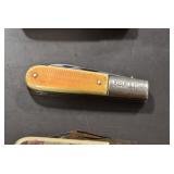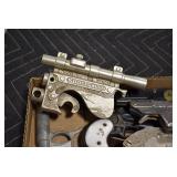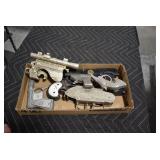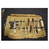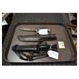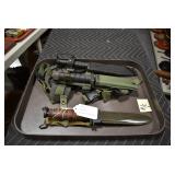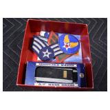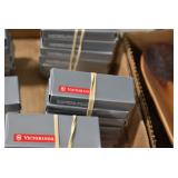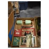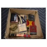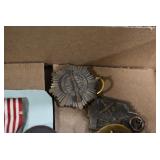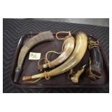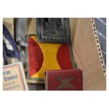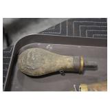 Sporting/Military Related: Antlers on Plaques, Folding, Pen, and Sheath Knives, Butcher Knives, Ammunition, BB Guns, Powder Flasks, Powder Horns, Military Buttons and Badges, Large Shells, Military Related Books, Fort Pillowcases, Ammo Cans, Patches, and Other