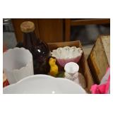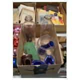Antique Glassware: Milk Bottles, Uranium Glass, Pink Depression, Glass Eggs, Chicken on Nests, Glass Ash Trays, Glass Figures, and Other