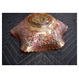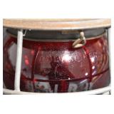 Antique Glassware: 20+ Pieces of Various Colored Carnival Glass, Bumstead’s Worm Syrup Bottle, Green Depression Glass, Ruby Glass, Kobalt Blue Glass, Glass Paper Weights, The “Oeneas” Wash Down Closet County Counsil Pattern Blue and White Porcelain Commode/Lavatory, and Other