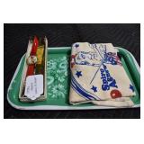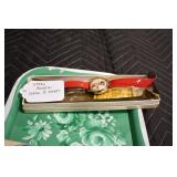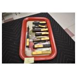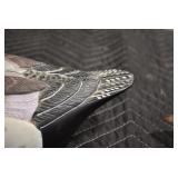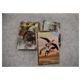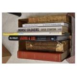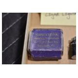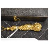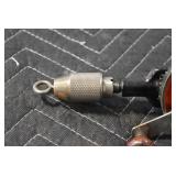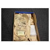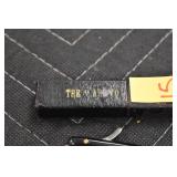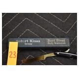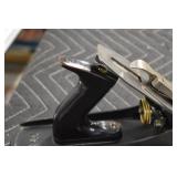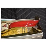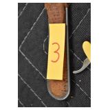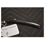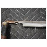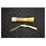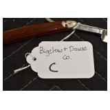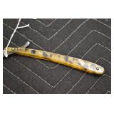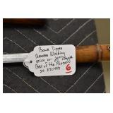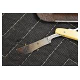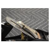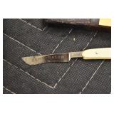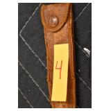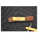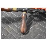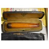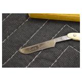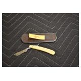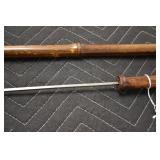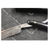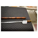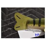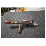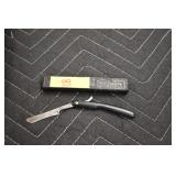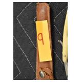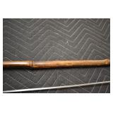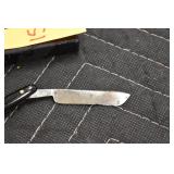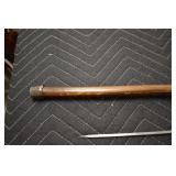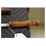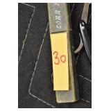 Sporting Related Items/Military: Daisy and Crossman BB Guns, Bone Handled Hunting Knives, Sakura Japan Sheath Knife, Gesetzlich Schutzte Russian Knife, Brass Pike, Vintage Binoculars, Fencing Swords, Military Pins and Badges, Vintage Fishing Licenses, and Other