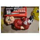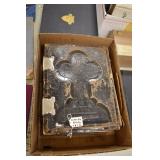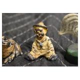 Castware: Large Cast Bell w/Yoke, Cast Iron Butcher Kettle, Cast Stove, Miniature Cast Figures, Cast Banks, Cast Doorstops, and Other