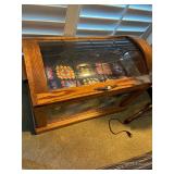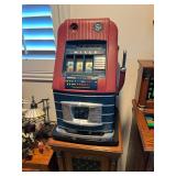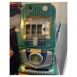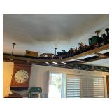 Tools Tool cabinet Train collection Wall clocks & other various clocks Antiques & Vintage treasures MIlls 5 cent slot machine Play Quarters wooden slot machine Mills Token BEll 5 cent green slot machine QUilts LOvely glass and wood chest Wooden swivel barstools Variety of lamps Porcelain vases & figurines White Clad refrigerator wooden box Dolls Artwork LG, Samsung TV Bose speakers Corner curio cabinet Bird figurine collection Car show trophy's Goebel Hummel Figurines Bolo's Vacuum