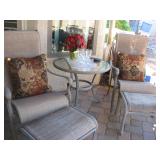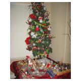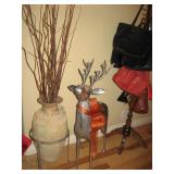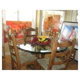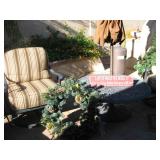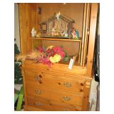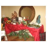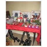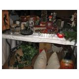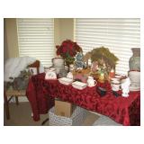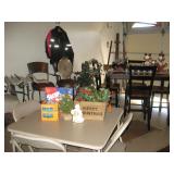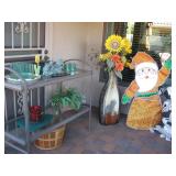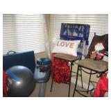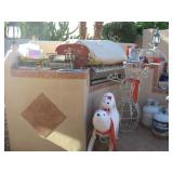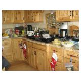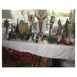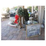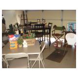 Rustic, all wood furniture such as display cabinets, hutch, desk, bookcase, server and even a top of the line wagon wheel bench. We have holiday decor throughout the home as well as many party gift ideas. A king size bedroom set; recliners; a beautiful Southwest dining table with four chairs; High-end Patio furniture pieces; dressers; Lingerie cabinet that swivels to a full length mirror; lady's bike; Vintage sewing machine (works great) with deluxe cabinet; a few Harley Davidson pieces; a large glass top dining room table with six chairs; a few Christmas trees; portable massage table; free weights; storage shelving units; golf clubs; Chico clothing; table cloths; Fine art work; high top table set; washer and dryer; area rugs; bar stools; pet stroller; a very nice storage shed and much more.