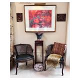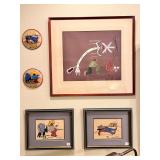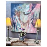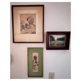 •Artwork & Paintings: ** Russell Hamilton- Original Oil on Handmade Paper, ‘SCAR’ Circa 1986, New Mexico.. ** Lloyd Moylan- Original Watercolor on Paper, ‘Fiest at Camp’ Circa 1986, Santa Fe.. ** Elaine Holien- Watercolor on Paper, ‘Canyon, Aerial View’ Circa 1986, Santa Fe.. ** R. C. Gorman- ‘Daydreamer’ #3/200 Circa 1980’, beautifully framed.. ** Dick Elliott- Original Watercolor on Paper, ‘Landscape & Stream’ Signed.. ** Fay Golson- American Artist/Painter, Original Oil on Canvas, ‘Native American Textile’ BEAUTIFUL! ** Mattie Robnett Kenney- Original Oil on Canvas, Landscape of Bitter Lakes National Wildlife Reserve near Roswell New Mexico, Circa 1979.. ** Jim Jones- Texas Artist, Watercolor on Paper, ‘Sand Dune’.. ** Betty Martin- Original Oil on Canvas, ‘Morning in Pueblo’ Circa 1986.. ** M. Gilbert- Oil & Acrylic on Canvas, ‘Butterflies’.. ** B. Mussett- Oil on Canvas, Original of Landscape (40x52).. ** Sandra Humphries- Watercolor on Paper, Original of Desert Abstract.. ** S. Ziomek- Watercolor on Paper, Original of Foral.. ** F. Andrews-Watercolor, Vintage Mexican ‘Gordo/Fatso’ Circa 1942.. ** Pair of Italian Colorized Botanical Etchings, Unknown Artist.. ** Shondee/Native American Original Gouache on Paper, Signed.. ** Several Framed Japanese Woodblocks..