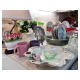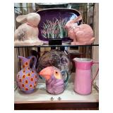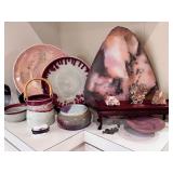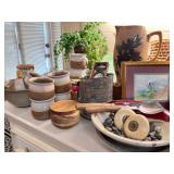 •Pottery: ** Kenyon Thomas- Original signed Porcelain Pottery pieces from Taos, New Mexico.. ** Liz Anderson- Contemporary Raku Pottery.. ** Shel Neymark- Architectural Ceramics.. ** Eric O’Leary- Ceramic Side Table and Tray.. ** Pair of transmutation glaze vases Circa 1900.. ..several other fun pieces throughout. Stop and check each of them out!