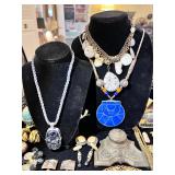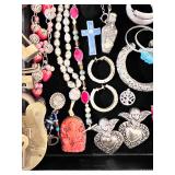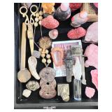 All the pretty things are with Janet, Stacy and Jennifer this weekend in the Jewelry and Collectibles Area.. an assortment of Various Costume Jewelry and Sterling, a Joan Slifka Sterling Heart Belt and Georg Jensen Sterling Bowl.. great names like Joan Slifka, JB Navajo, karami, Erwin Pearl, No Dk Co, Von Maur, Julio, Chicos, Toney & Romelda.. a beautiful Ethiopian Cross, Sheffield Women’s Watch, Benally Navajo Belt Buckle to Givenchy Concorde Eyeglasses and Laura Biagiotti Eyeglasses. A TON of Zuni Fetishes, Lapis Carvings, Soapstone Carvings, Malachite Carvings, Inuit Carvings, Horn Carvings, a Stone Kingfisher Bird, Corral, Cinnabar, Asian Snuff Bottles, Chops, a Pair of MCM Brutalist Candlesticks from Israel, Robert Held Art Glass, VTG Tuning Fork, Banjo Oil Can, Sheaffer Pens and Mod Brevet Inkwell, Michael Chiago Original Mini Art, Vintage Sugar Tongs to Brads Asian Locks, Peruvian Burial Dolls and ‘Worry Dolls’..