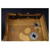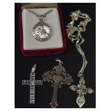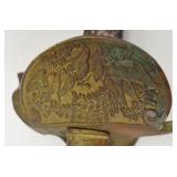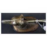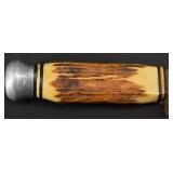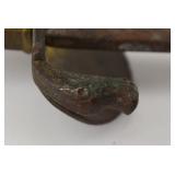 Catalog: 1 Blue & Gray Stencil and Freehand Decorated Stoneware Crock E.J. Miller & Co. Queensware Alexandria VA 2 Freehand Decorated Blue & Gray Stoneware Crock Stamped E.A. Montell Olean NY 3 Gallon - Cracked 3 Primitive Kerosene Oil Slatted Wood Drum w/ Spot In Early Red Wash 4 Solid Brass Fireplace Footman Trivet w/ Lionhead's 5 Brass Candy Bucket With Iron Handle 6 Primitive Wood Butter Bowl 7 Bennington / Rockingham Yelloware Pottery Dog 8 Salt Glazed Stoneware Pitcher 9 Swan and Cow Hand Carved Wood Butter Molds 10 Solid Brass Mortar & Pestle 11 Vintage CW Brand Coffee Tin 12 Antique Cast Iron Face Match Holder 13 Carved Bone Letter Opener, Dip Pen & Wax Seal w/ Stanhope Lens 14 Carved Meerschaum Horse Pipe w/ Case 15 Early Dovetail Wood Box with Chinese Writing, Forged Iron Hardware 16 Small Primitive Wood Box In Green Paint 17 Wood Handle Short Blade Knife w/ Brass Hilt 18 Carved Bone Figural Handled Axe - Tribal Origins 19 Made In Finland Puukko Knife w/ Figural Carved Pommel 20 Browning Renaissance Hi-Power 9MM Highly Engraved Pistol Made In Belgium SN 71C30322 - Custom Grip w/ 2 Gold Mexican 5 Pesos Coins 21 Colt Police Positive 32 Police CTG 1905 Revolver 22 Hopkins & Allen XL 8 Double Action .22 Cal Centre Fire Revolver with Mother Of Pearl Grips 23 Civil War Hand Colored Tin Type Of Soldier In Uniform Brandishing Pistol In Patriotic Case 24 US Civil War Pouch or Strap Plate 25 Civil War Soldier Letter Dated July 1 1864 "Camp 32nd Map Vols" 26 Civil War Civilian Letter "New Brunswick NJ 1864" 27 Confederate Civil War Sword 28 US Naval Officers Sword and Scabbard 19th Cent. 29 Vietnam Wood Handle Fighting Knife 30 Pair Of Ornate Cast Metal Cherub Themed Parlor Lamps with Hand Painted Glass Shades 31 Gucci Adidas Horsebit 1955 Leather Mini Shoulder Bag - Brand New 32 Mary Frances Beaded Bee Awesome Crossbody Phone Bag - New 33 Silver Metal Lace Bib Statement Necklace - Not Sterling 34 14K Gold Ring w/ Amethyst Stone - Total Approx. Weight 7.41 Grams 35 14K Gold Charm with Purple Stone - Approx. Weight 7.99 Grams 36 14K Gold Hoop Earrings (Damaged) - Approx. Weight 1.53 Grams 37 14 Gold Link Chain - Total Approx. Weight 2.89 Grams 38 14K Gold Rope Chain with 14K Gold Charm - Total Approx. Weight 13.97 Grams 39 Gucci Autre Marque GG Supreme Marmont AirPods Case - Brand New w/ Box 40 Muller Frères Luneville Art Glass Vase 41 Art Nouveau Cast Metal Gold Jewelry Trinket Box w/ Hand Painted Centerpiece 42 60 Quality Costume 14-18K Gold Plated Rings w/ Genuine Stones (Assorted Sizes) w/ Display Case 43 Gucci Women's Black Leather GG Continental Wallet - Brand New With Box 44 Apple I Watch Series 8 - Working (used) w/ Charging Cable 45 Studebaker Portable AM/FM Radio 46 Ruko F11GIM2-3B Drone with Gimbal+EIS 4K Camera - Brand New 47 Antique Postcard Album Loaded with A Great Selection of Cards 48 28 Antique Santa Claus Postcards Including Rare Colors 49 24 Antique New Years Postcards 50 US Mail 990-5 TWA Windup Tin Bi-Wing Airplane 51 Fontaine Fox Windup Tin Litho Toonerville Trolley 1922 52 Vintage Marke Lehman Germany Tin Litho Windup Duo Rabbit On Egg Pulled By Chicken Toy 53 Adjustable Brass Clothing Display Piece 54 Coca Cola Bottle Wood Crate In Paint 55 Wood Wall Mount Shelf 56 Victorian Wood Drying Rack 57 Esquire Extra Dry Beer Jones Brewing Co. Golf Clock 58 Stoney's Beer Advertising Tin Sign 59 Framed Harpers Weekly Page 1871 Views Of Pittsburg by Charles Reinhart 60 Whiting Harvey Ill Porcelain Sign 61 Set of 6 Queen Anne Mahogany Ball & Claw Footed Chairs Including 1 Arm Chair 62 Set of 6 Queen Anne Mahogany Ball & Claw Footed Chairs Including 1 Arm Chair - Some Have Damage To Claws 63 FWCF Fellowship of the Worshipful Company of Farriers Painted Wood Box 64 Bernhard Gloekler Pittsburgh Cast and Wrought Iron Butchers Wall Mount Meat Rack 65 1920's Chinese Republic Lamp w/ Bronze Fittings "Large" 66 Pittsburgh Instrument & Machine Brass Surveyor's Transit w/ Tripod 67 Colorful Area Rug 62x36 68 Colorful Hand Made Area Rug 69 Macie Made In Mexico Sterling Silver Bowl - Approx. Weight 36.2 Oz. 70 Whorra Sterling Silver Compote - Approx. Weight 16.4 Oz. 71 52 Different Proof and Uncirculated Kennedy Half Dollars 72 Complete Set In Book 1999-2009 55 Proof Quarters 73 American Waltham Watch Co Pocket Watch In SWCCO Gold Filled 20 Years Case 74 Elgin Pocket Watch In Warranted NAWCO 20 Years Case - Works 75 Reverse Painted Windmill / Cottage Scene Bell Shade Lamp w/ Ornate Cast Iron Base 76 Original Metlach Decorated Stein w/ Figural Handle 77 Roseville Art Pottery White Rose Blue Azure Pillow Vase 78 Cybis Porcelain Raccoon Figurine 79 Boehm Porcelain Bird Figures - Baby Chickadee, Barred Owl & Nuthatck 80 Boehm Porcelain Bird Figures - Tree Sparrow, Baby Blue Joy & Baby Crested Flycatcher 81 Spanish American War Admiral Dewey 1898 Commorative Clock 82 Prada Women Vernice Crystal Studded Saffiano Leather Top Handle Shoulder Bag Beige - Used 83 Ornate Cast Metal and Glass Ring Box w/ Hand Painted Porcelain Medallion Centerpiece 84 Designer Beaded Woman's Necklace 85 2 Designer Women's Bracelets 86 Geneva & Blekon Stretch Band Watches - Working 87 1948 Cinco Pesos .900 Coin Lighter 88 Christmas 2001 Baby Jesus Coin .999 Fine Silver Troy Ounce 89 Mothers Day 1974 Madison Mint .999 1 Oz. Fine Silver 90 Pair Sterling Silver Weighted Candle Sticks and Shakers 91 Preimer Sterling Silver Weighted Compote - Approx. Weight 11.4 Oz. 92 14K Gold Ring with Emerald Stone - Total Approx. Weight 6.63 Grams 93 14K Gold JCM Diamond Cut Wide Hoop Earrings - Approx. Weight 1.69 Grams 94 Pallidum 950 Band - Approx. Weight 8.44 Grams 95 14K Gold Necklace - Approx. Weight .94 Grams 96 14K Gold Rope Chain with 14K Gold Charm - Total Approx. Weight 10.16 Grams 97 14K Gold Rope Chain with 14K Gold Cat Charm - Total Approx. Weight 19.77 Grams 98 Sports Cards - Roberto Clemente Gold, Bill Mazeroski, Michael Jordan 99 James Arness Autographed Photo - Gunsmoke Star 100 Saint Laurent Sunset New Aspen Medium 