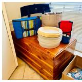 ~Please look forward to: 2 large gun safes, Nice cargo trailer, Flatbed trailer, Extensive fishing & hunting gear, Equestrian saddles & tack, Vintage Pottery from Roseville & Hull, Fiesta-ware, Cast iron cookware, Vintage Breitling Premier Chronograph, Misc. Vintage timepieces, Nice selection of Native American jewelry including a Squash Blossom necklace, Assortment of hunting & pocket knives, Depression glass galore including Epergnes, Uranium, Fenton, Milk-glass, Carnival & more, Jam-packed gourmet kitchen, Stainless refrigerator, Great selection of small appliances (many are new in box), Original vintage paintings, Antique furniture, Bose Soundwave w/remote, Electronics, Stereo equipment, Speakers, Computers & Accessories, Franciscan Desert Rose china & stemware, Formal dining table & lighted china cabinet, Rolling vintage teacarts, Vintage vinyl LP's, Fine gold, silver & gemstone jewelry, Vintage costume jewelry, Vintage fashion, Cowboy boots, Original Naval officers sword, Retro Pyrex & Corningware, Fire-King, Old butter churns, Crockery, Vintage Tupperware, Cookie Jars, Collection of Vintage Toys, Elna sewing machine, Vintage Christmas decor, Seasonal items, Disney collectibles, Brass & Copper accents, Framed prints & mirrors, Die-cast cars, Drop leaf table, Curio cabinets, Fine china, Crystal & Porcelain, (Like New) Mobility Scooters, Pellet grill, Picnic table, Huge selection of camping gear, Fishing rods, Tackle boxes, Vintage & modern fishing reels (Fresh & Salt water), Figurines, Sculptures, Vintage snow sleds, Lawn care, Air compressor, Power tools, Hand tools, Yard tools, Lawn mower, Garage storage cabinets & shelves, Books, Media items, Office furniture & supplies, Quilts, Bedding & Linens, New household items, Cleaning supplies, Ladders, BBQ grills, Outdoor swing, Teakwood deck box, Misc. Collectibles & So Much More! (Additional photos will be uploaded Wednesday night)