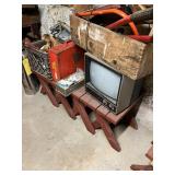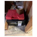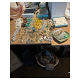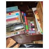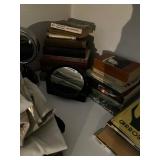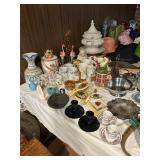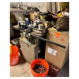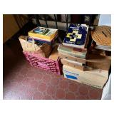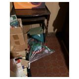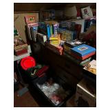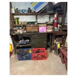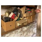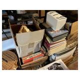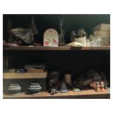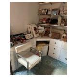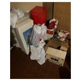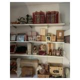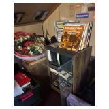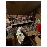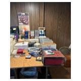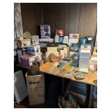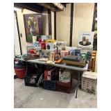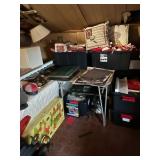 Overloaded with Christmas and more holiday decorations, loads of vintage clothing, shoes, bags, hats, belts, gloves & other accessories, set of Franciscan Ware Desert Rose with lots of serving pieces, lots of collectible bric-a-brac, crystal, decorative accent pieces, costume jewelry, new in the box kitware & other giftware, modern metal table with glass top & a metal sculpture, pair of Tulum chairs, beautiful burled china closet with desk, MCM campaign style dressers, dining room table with green leather nail head chairs, wood filing cabinet, dresser & mirror, pair of tapestry arm chairs, small appliances, pots and pans, new show towels, quilts, plants, Sentry safe, paper shredder, dehumidifier, Kenmore sewing machine, lots of hand tools, wood tool box, shop vac, power tools, bar signs, records, tons of books, puzzles, games, toys, cameras, projectors, candles & more! |