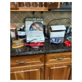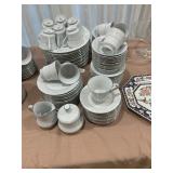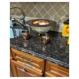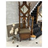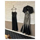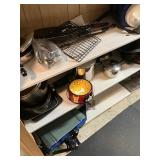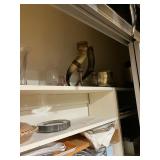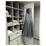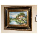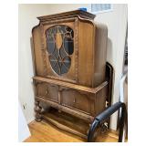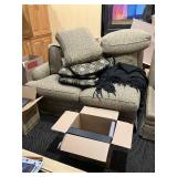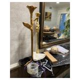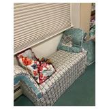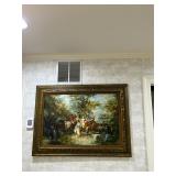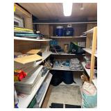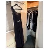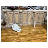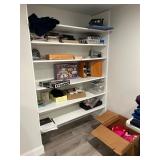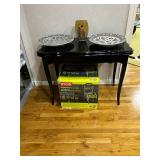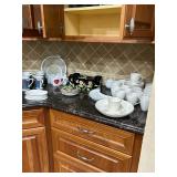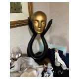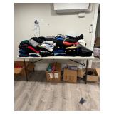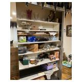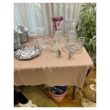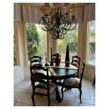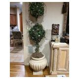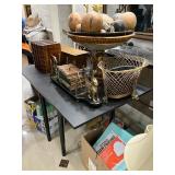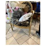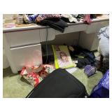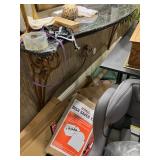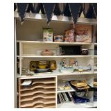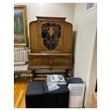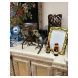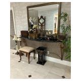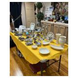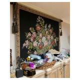 Lots more to be uncovered at tomorrow's setup. Please check back tomorrow afternoon for new pictures and information Pair of burled mahogany end tables, vintage china closet, marble top console, custom credenza, 8 upholstered dining room chairs, counter stools, pair of gold & tapestry side chairs, mica bedroom furniture, round pedestal kitchen table with 4 ladderback chairs, gilt mirror, lamps, tapestry, topiary, serving pieces, throw pillows, planters, rugs, kitware, oils & prints, lots of clothes (not pictured), decorative accent pieces & more! |