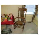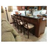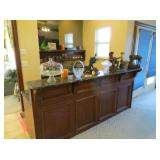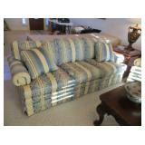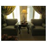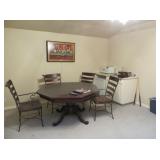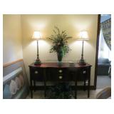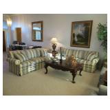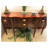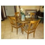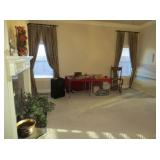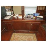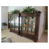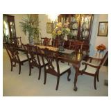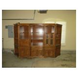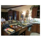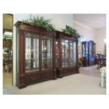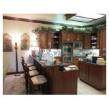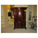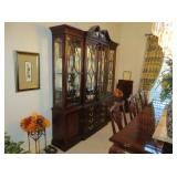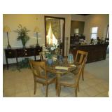 Large Items: House full of Thomasville furniture. Formal Thomasville dining set in flame mahogany with 8 chairs; stunning Thomasville break-front china cabinet in flame mahogany; 2 massive Thomasville lit curio cabinets in mahogany; impeccable Thomasville armoire in mahogany; 4 modern Thomasville bar stools; magnificent Hepplewhite-style Thomasville server in mahogany with inlay; two matching Thomasville sofas; two comfortable matching Thomasville club chairs; enormous Thomasville sectional in a great neutral fabric; bergere-style Thomasville chair; decorative Thomasville wicker trunk; four Keller iron and wood chairs; nice Hooker desk; Ashley dining set with four chairs finished with faux marble top; carved ball-and-claw mahogany coffee and side table; 3-way game table; Broyhill entertainment center; Lazy-boy recliner; Roper refrigerator Schwinn exercise bike; teak patio furniture set; area rug; pressed antique oak rocker; large high-quality artificial tree; filing cabinet; massive mirror; large crane artwork.