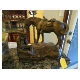 Collectibles: Remington Bronzes: Wicked Pony, Stampede, and Coming Through the Rye; Austin Western scupltures; nice Brahmin purse; large collection of Duncan Fullerton Early American Black figurines; Little Rascals plates; Burlington Northern Santa Fe plates; Trout fishing plates; NASCAR UPS collectors items; Givenchy jewelry; Camrose and Kross; Seiko watches; nice costume jewelry; wide array of ammunition; a Browning .22 A-Bolt action rifle; Puma knife; Imperial knife; Buck knife; wonderful decorator lamps, accessories, and greenery; beautiful vases; Dogs Playing Poker with green neon light; Altec Lansing speakers; Pyrex set; Noritake 'Dearborn' china set; Spooked by G. Harvey; nice floor lamp; John Richards plaques; Santa Fe painting by Franko; dog in suit painting.