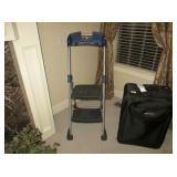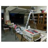 Misc.: Aluminum ladder; Coleman camping items; yard spreader; GE microwave, dorm fridge, nice bar and kitchen items; home electronics from Sony, RCA; Christmas and fall greenery and table-scapes; nice ladies clothing; computer, printer; easel; character cake molds; shelves; nice step ladder; Juicy Couture.