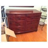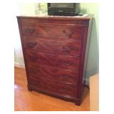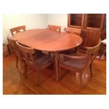 | Great Furniture including a wonderful solid wood mid century dining table / 6 chairs, black futon, antique bedroom set with bed / frame, dresser / mirror and tall dresser, 2 end tables, area rugs, outdoor items and bench, living room items, kitchen items and small appliances, glass front hutch, bookcases, books, some electronics, framed prints, linens and towels, glass and ceramic décor, lamps and MUCH MORE !! |