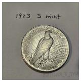Sunday, December 1st Signs, Stoneware, Antiques & Collectibles 8:00 A.M. preview, 9:00 A.M. start Nice selection of advertising tin signs, Red Wing stoneware to include crocks, butter churns, advertising jug, advertising bean pot, advertising creamers, bowls and other pieces, cast iron pans, holiday blow molds, lighted ceramic Christmas tree, small Anvil (solid), cast “Buckeye” tractor seat, glass minnow trap, vintage duck decoy, tobacco tins, Hamm’s beer apron, Beatles record albums, Coors clock, Old Style light, Craftsman table saw /w router, Craftsman tool chest, miscellaneous woodworking and other tools. Firearm: Ruger Mark II .22 pistol Coins: (7) 1921-S Morgan dollars, (3) 1921-D Morgan dollars, (5) 1921 Morgan dollars, 1923 Peace dollar, 1923-S Peace dollar, 1922 Peace dollar, (2) 1922-D Peace dollar, (2) 1922-S Peace dollar |