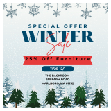 Decorate for the Holidays & Shop at The Backroom Antiques with 25% OFF ALL FURNITURE in Stock from exquisite local Estate Sales. Buy nice Dining room Tables, Chairs, Bedroom Bureaus & Night Stands, Consoles, Chests, Curio cabinets, Benches even Outside Iron Deck furniture All priced to sell this weekend at 25% OFF Ticket price. OPEN 11 AM - 5 PM Friday 11/29 - Sunday 12/1 at 655 Farm Rd (Trombetta's) Marlborough MA 01752 Christmas trees are in too. Lots of Holiday decor. Family friendly Indoor Mini Golf, Homemade Ice cream on-site. |