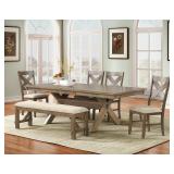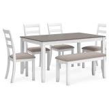 (22) Signature Design by Ashley Stonehollow Modern Farmhouse Dining Table with Upholstered Chairs and Bench, Set of 6, White & Gray