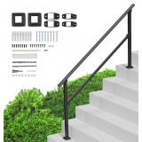 Handrails for Outdoor Steps, 5-6 Step Stair Hand Rail Kit, Transitional Carbon Steel Railings with Installation Kit, Stair Rails for Seniors, Concrete Steps & Porch & Deck, Black Square Tube