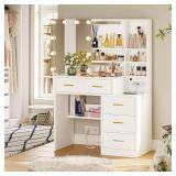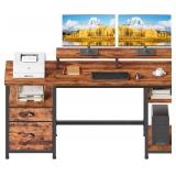 Furologee 61" Desk with Fabric File Drawer, Reversible Computer Desk with Shelves and Drawer