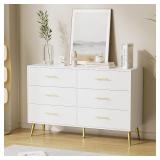 White Dresser for Bedroom, 6 Drawer Dresser with Wide Drawers - Box 2 of 2 Only