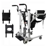 Hydraulic Patient Transfer Lift Chair w/180° Split Seat for Home Multifunctional Transfer Wheelchair w/Backrest and Potty Adjustable Seat Height Shower Chair, Elderly Lift aid Bedside Commode Chair